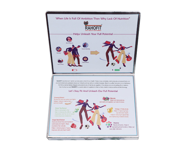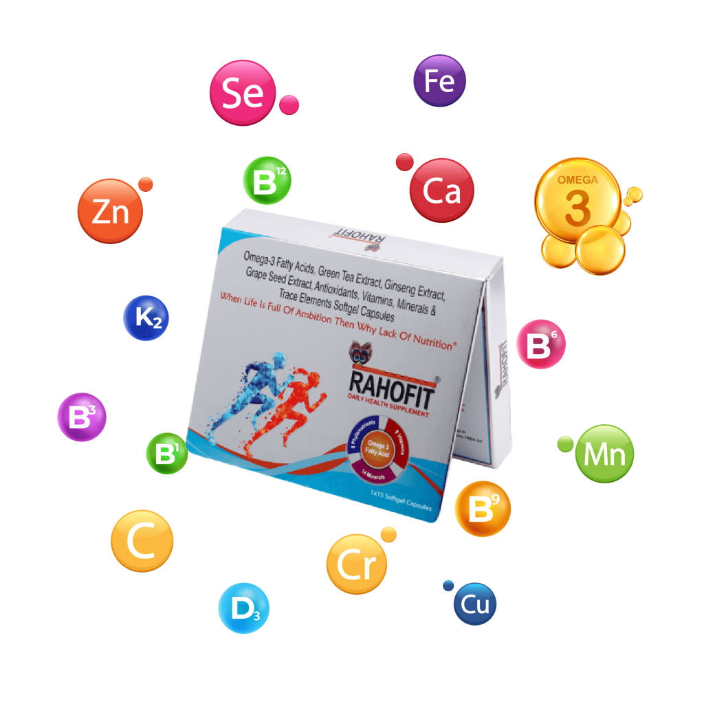 RAHOFIT packed with a potent blend of Omega-3, essential vitamins, minerals, and powerful antioxidants. RAHOFIT is designed to help you fortify your body’s defenses, boost your immune system, increase energy levels and promote overall well-being.